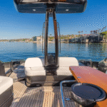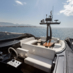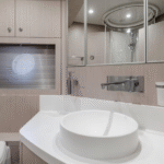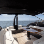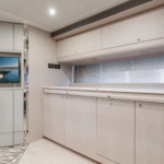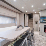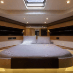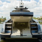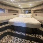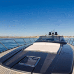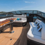 The highlights of this Mediterranean-styled yacht are the big outdoor spaces at the bow and in the cockpit, designed for people who are drawn to boating for the sheer joy of feeling the wind, sun, and spray in their faces while traveling from port to port. There’s a good deal of thrill to be experienced, too, as this yacht is powered by twin 1,360-hp MAN engines.